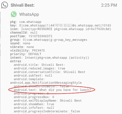 However, the first 100 characters of the message will appear in the line starting with ‘android.text.’